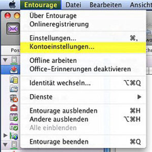 1. Öffnen Sie in der Menüleiste unter Entourage die Kontoeinstellungen...