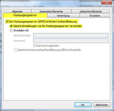 5. Im Registerblatt Postausgangsserver aktiveren Sie Der Postausgangsserver (SMTP) erfordert Authentifizierung