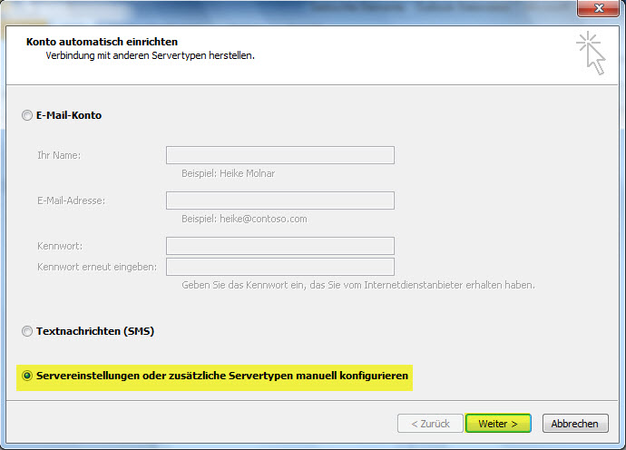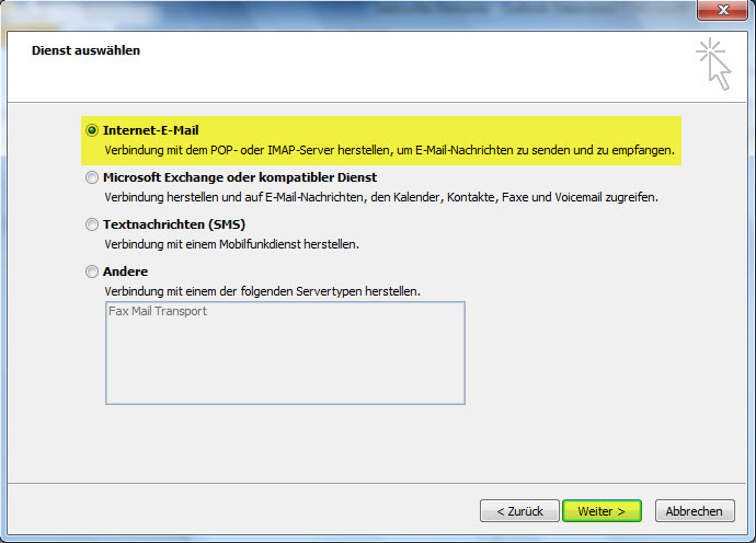 1. Wählen Sie in der Menüleiste unter Datei - Konto hinzufügen