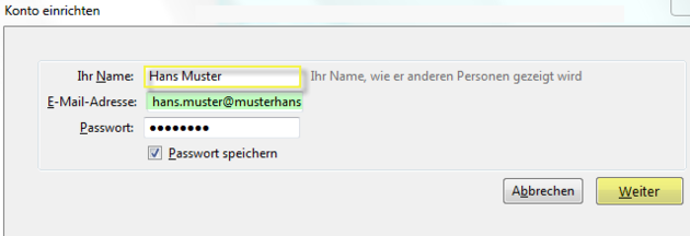 10. Klicken Sie anschliessend auf OK. Ihr Konto ist nun eingerichtet.