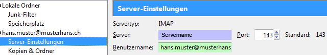 4. Wählen Sie IMAP und geben den Posteingangs- und Postausgangsserver an.