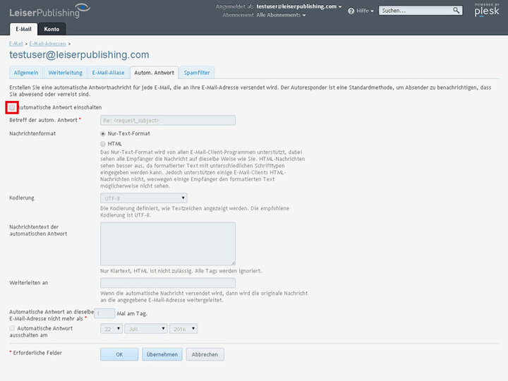Diese Einstellung kann neben dem Admin jeder Mailbenutzer im Control-Panel selbständig vornehmen.